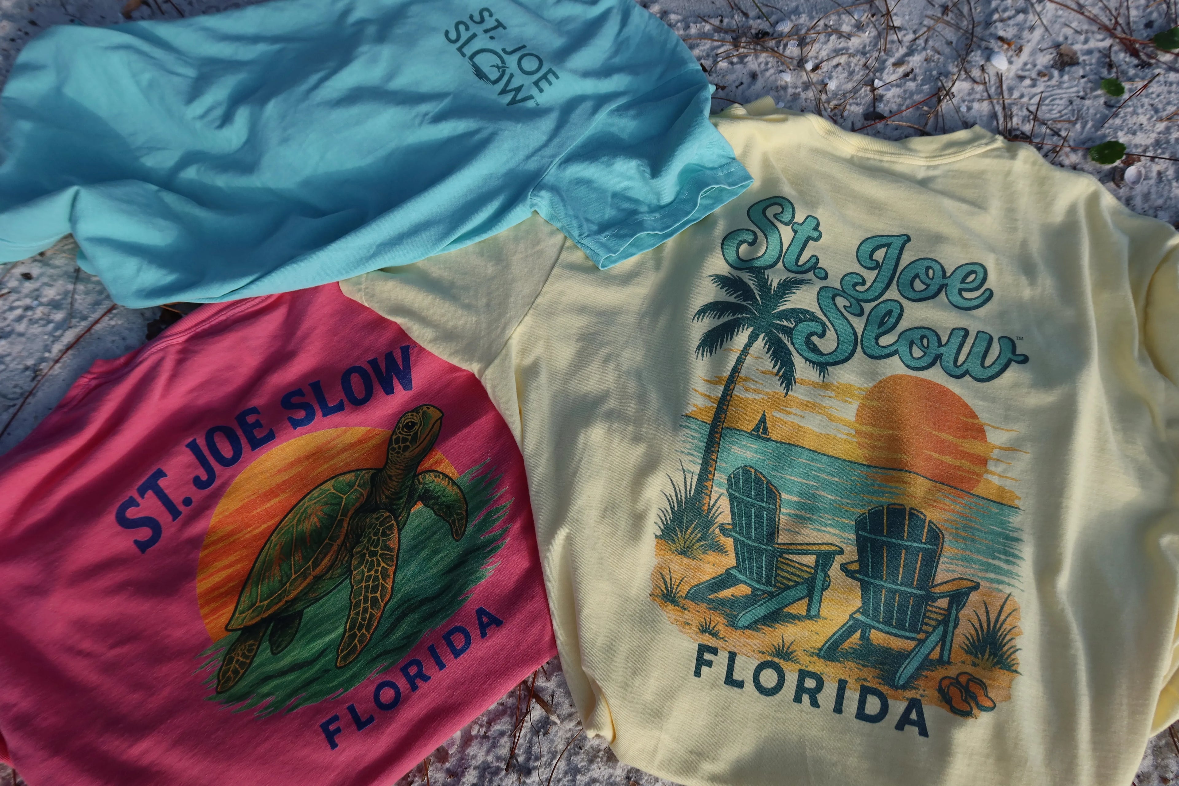 At St. Joe Slow, we keep things simple just like life by the beach. We're a coastal graphic tee boutique with big love for coastal living and community connection. You’ll find us soaking up the sun and sharing our designs at local markets around Port St. Joe. Swing by, say hi, and snag your new favorite graphic tee.